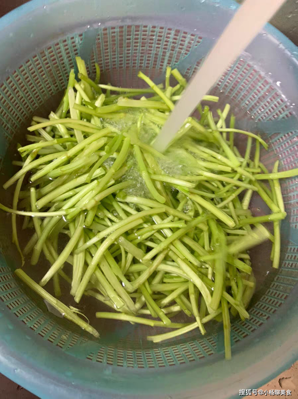 1,首先,買把買回來的藜蒿外表處理下,放在清水內多洗幾遍,上面的髒汙洗淨後,再切成小段,放在乾淨的盤中備用。