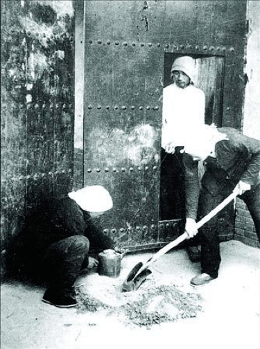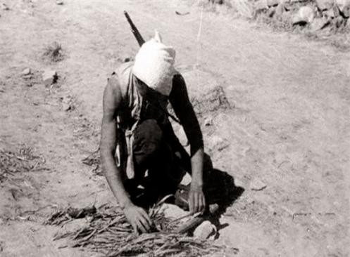 △地雷戰真實照片,民兵在預埋地雷。