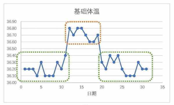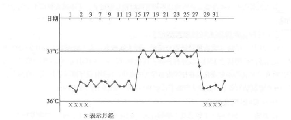 具體而言,卵泡期基礎體溫較低;排卵後人體體溫調節中樞得到啟動,使基礎體溫上升0.3℃-0.5℃,並持續到月經來潮;月經來潮後體溫又降至原來的水准,由此周而復始(如圖1)。