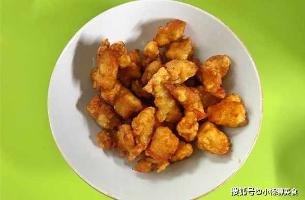 4、雞肉初炸後撈出再入鍋複炸一下,吃起來更香脆,但炸的火候要把握好,不然易糊。