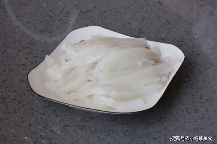 3、要提前备好一盆凉的开水,煮好的墨鱼,再过一遍凉开水,口感更加脆嫩,更加好吃,一咬就断哦!