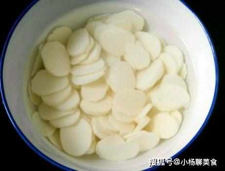 第一步,山藥先削去皮,清洗乾淨,山藥切成片,大小自定,切好的山藥片迅速放入清水中浸泡,接下來再處理其他的食材;