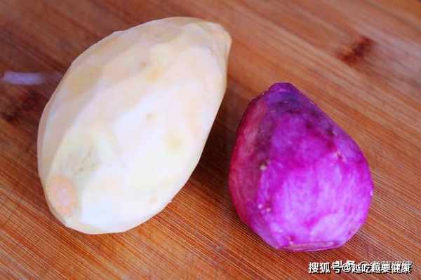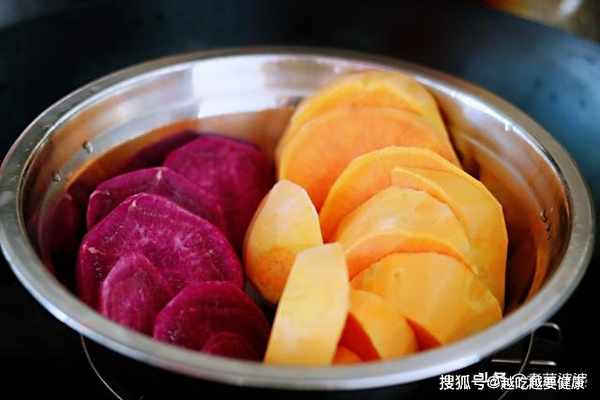 2、紫薯中含有不少花青素,花青素溶于水,所以煮的時候一定要先下紅甘薯,不然容易被染色,就不好看了。當然嫌煮太麻煩了,也可以直接蒸,省事~