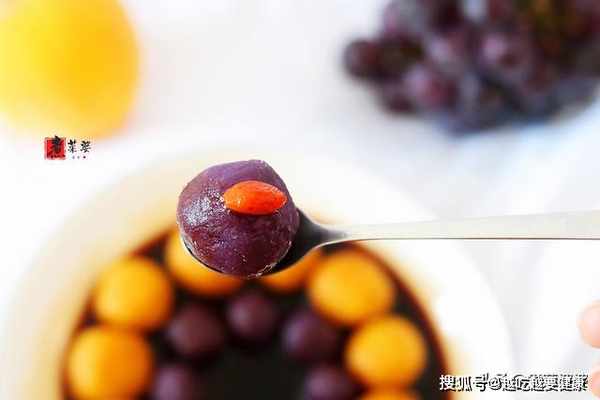 【食材】:紫薯、紅甘薯、黑糖、冰糖、枸杞子、紅薯澱粉。
