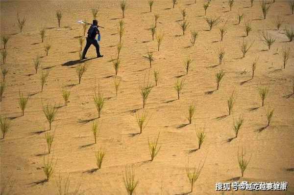 這種樹的名字就是眾所周知的梭梭樹了。梭梭樹的顏值並不高,看起來和普通植物並無大區別,但是,它卻是一種抗旱、抗寒和喜乾燥的神奇植物,特別適合在沙漠地區進行種植。在多數植物都無法生長在沙漠地帶,梭梭樹能够依靠少量的水分存活下來,正常生長。正是因為它的本領這麼大,才會被選做固沙保土的綠色衛士。