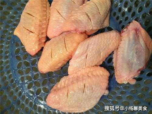 步驟1:拿出雞翅,然後將雞翅放在水中清洗乾淨,接著將雞翅上沒去乾淨的毛用鑷子夾掉,並且將雞翅沖洗一下後放入清水中,然後泡上半小時。時間一到就將雞翅撈出,沖一下之後在雞翅上劃上幾刀,或者戳上一些小孔,並且將雞翅上的水分用廚房用紙吸幹。