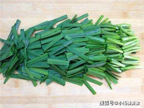 步驟2:取出1小把韭菜,先將韭菜上的一些黃葉,雜葉去掉,然後將韭菜扔入清水中,仔細的放在水中清洗,尤其是根部要洗乾淨。等到韭菜清洗乾淨之後就將韭菜放在菜板上,然後切成段,放在一旁備用。並且拿出2瓣大蒜,大蒜去掉皮之後切成碎末。
