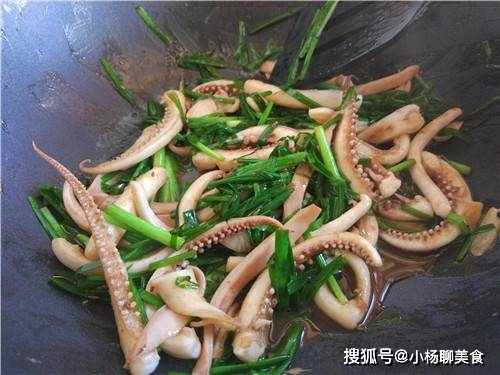 魷魚須可謂是路邊攤上的常客了,幾乎每一個路邊攤都會有魷魚須,而它在路邊攤中最經典的就是鐵板了,今天的這份魷魚須雖說不是鐵板的,但是口感也是不輸給路邊攤的。今天的魷魚須是和同樣是路邊攤熱門菜的韭菜一起炒的。韭菜和魷魚須的搭配不僅能聞起來沒有腥味,而且還能保持住魷魚須的脆嫩爽口,所以比路邊攤吃起來還要好吃很多,用來下飯吃十分合適。