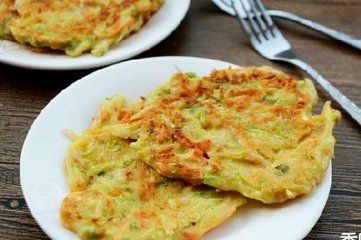 2、平底鍋加油,微熱時,用筷子撥些菜糊進去,調整成圓餅狀,小火慢煎至兩面黃色。