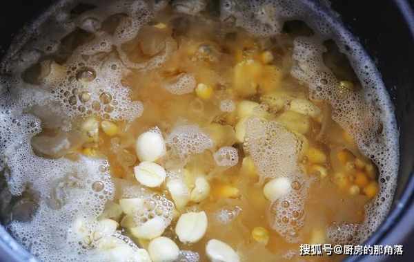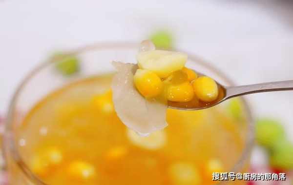 【白木耳銀耳粥】,主要是用當季最常見的甜玉米、蓮子來做的,裡面加了膠質豐富的白木耳,吃起來水靈靈的,不用加糖也很甜。甜玉米養脾健胃抗衰老,蓮子清心安眠睡得香,配以白木耳,滋陰潤肺,還能阻礙色素沉澱,淡化色斑。女人別喝豆漿了,每天1杯它,斑淡了皺紋淺了,勝過天天敷面膜。