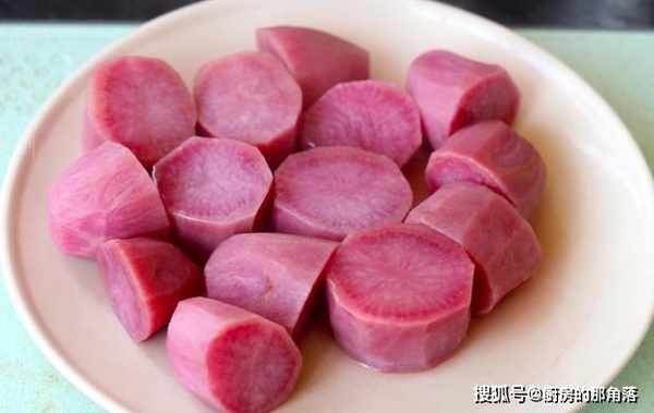 紅心洋芋它也是"地下蘋果",把其切成塊放入鍋中蒸,再取出一拌,比吃肉還過癮。紅心洋芋中含有大量的維他命C以及礦物質,優質澱粉含量更是高達16.5%,另外還含有大量的木質素,把它和培根一起搭配,做成一道簡單的晚餐,低能量但是高營養,喜歡的朋友可以試一試。