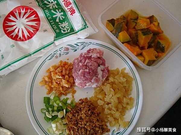 資料~~A:蒸熟的南瓜250g(原食譜壓成泥.我直接整塊的用.)、絞肉100g、菜圃50g、蝦米10g、油葱酥20g、蔥花、蒜頭各少許、(原食譜還有豆干丁20g .韭菜20g .辣椒少許……我沒有加.喜歡的朋友可以自己添加)