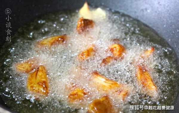 3、鍋中放入植物油,需要多放一些,油溫七成熱的時候,把醃制好的魚塊放進去,不要一下子全部倒進去,防止黏在一起。