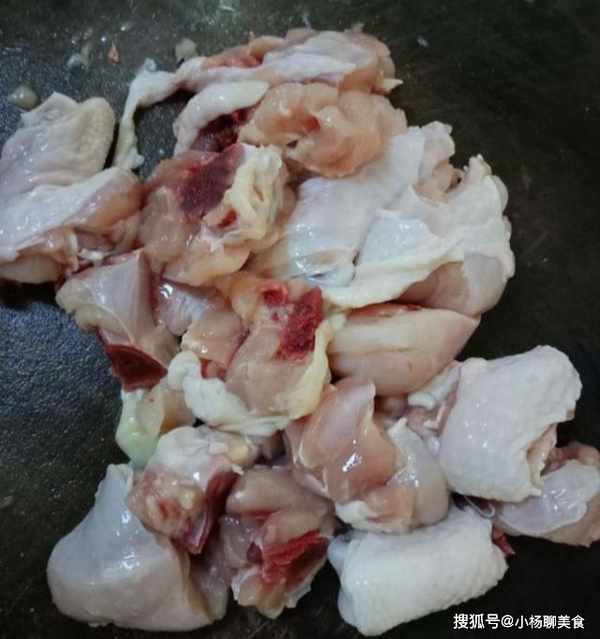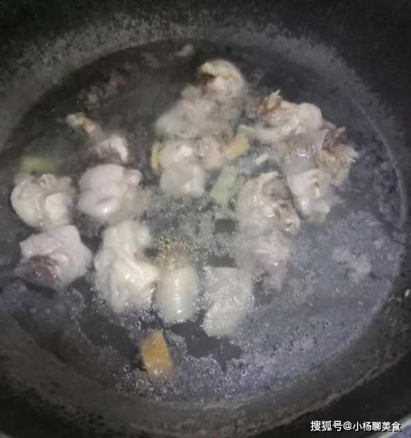 家裡的小孩比較喜歡吃雞腿肉,所以做大盤雞特意選用了雞腿。雞腿清洗乾淨,剁成小塊。放入鍋裏,加入白酒,生薑,大火焯一下水,這樣一來可以讓雞肉吃起來更鮮嫩,二來也會沒有一點雞餿味哦。