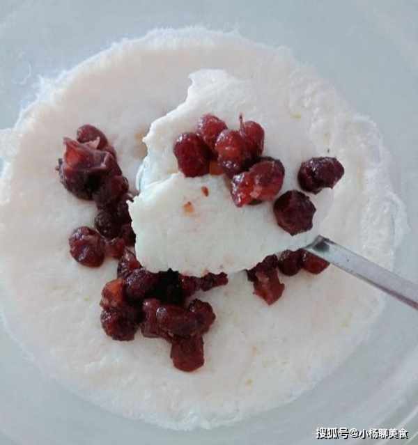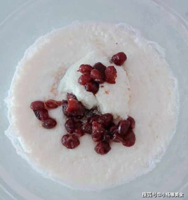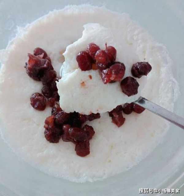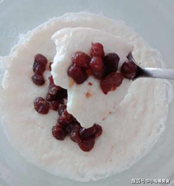 蒸好了,直接拿出來,用勺子盛入兩勺的蜜豆,蜜豆燉奶就完成了,朋友們,這蜜豆燉奶是不是有點像雙皮奶呢?吃上一口蜜豆燉奶,非常的鮮嫩滑口,好吃極了。