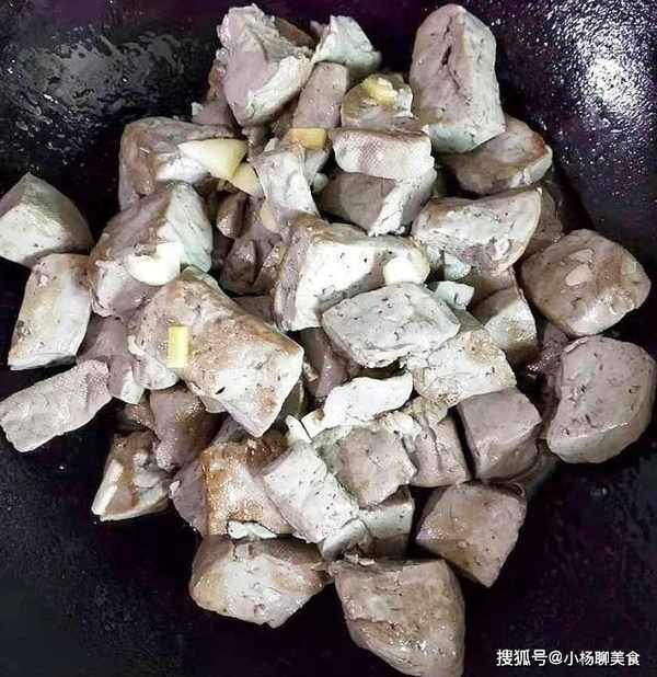 4.當黑豆腐表面7成熟時,大火將其翻炒均勻,炒勻後加入蚝油,料酒,切好的生薑,大蒜進行調味,用鍋鏟翻炒片刻,這樣可以使調味品與黑豆腐充分的混合在一起哦,大火轉中火,炒至鍋中水分快幹時即可關火出鍋,最後將炒熟的黑豆腐裝入盤中,在其表面均勻的撒上少許的蔥花裝潢一下就可以開吃了,喜歡的朋友可以試一試哦。