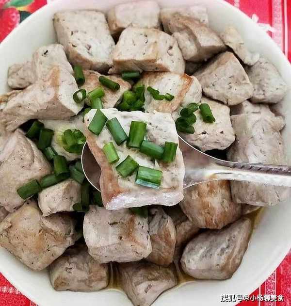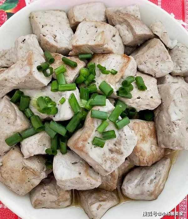 2.炒好的黑豆腐,我們可以在其表面撒上適量的蔥花裝潢一下哦,這樣一方面可以增添這道菜的口感,另一方面也可以使這道菜整體上看起來顏值高,會使人看起來就有食欲感哦。