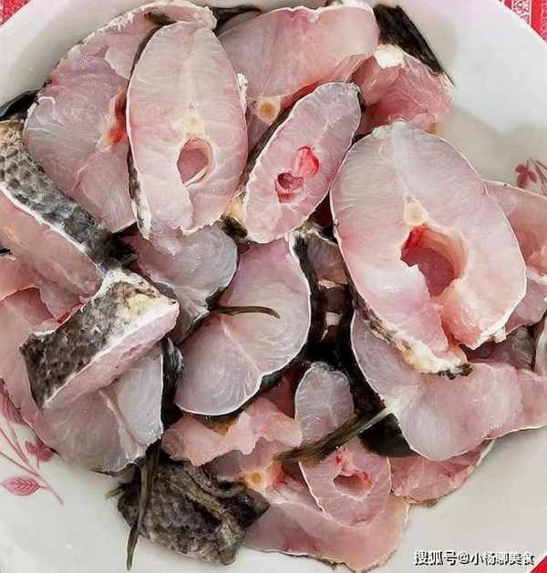 1.先將市場上買來的新鮮烏魚處理一下,為了確保烏魚吃起來口感好,營養好,而且更安全,我們需要將烏魚肚子裏的內臟取出,清水沖洗乾淨,多清洗幾遍,這樣才可以除去殘留的雜質哦,洗好後切成大小適合的塊狀,裝入盤中備用著。