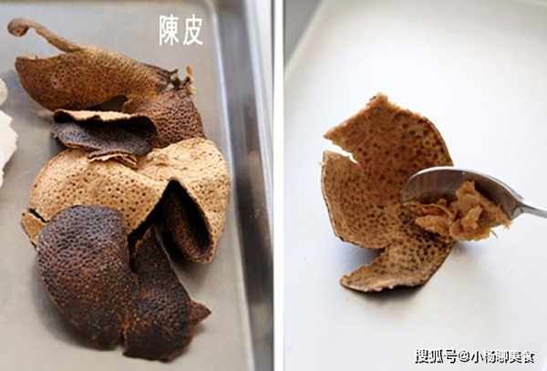 3.陳皮泡軟後,將帶有苦味的內瓤用刀或湯匙刮掉,可改放2~3片薑