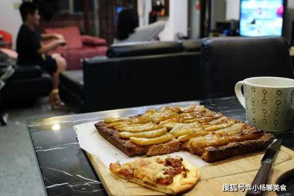 切開後中間內側的狀況有稍微好一些,雖然上面的蘋果片很好吃,但少了一般的派塔的奶香,口感也是偏粗糙,跟孩子原本的期待有很大的差距
