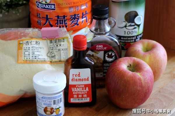 資料:杏仁粉、薏仁粉(我自己用薏仁磨成粉)、燕麥片、蘋果、椰子油、楓糖漿、香子蘭精、無鋁打泡粉