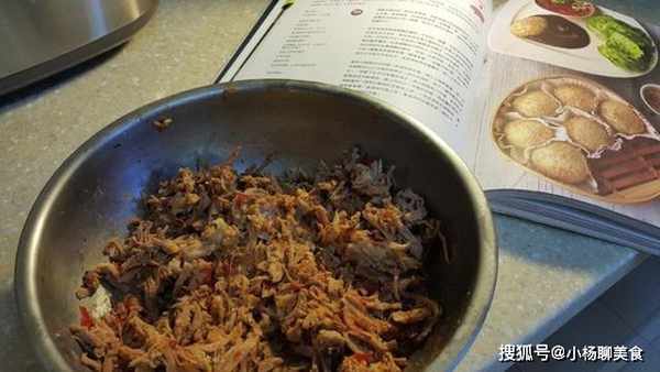 猪肉內餡前一晚玉潔就已準備好,五花肉小火燉撕成肉絲,再用豆瓣醬與辣椒醬調味。自發麵粉+牛奶+一小撮鹽充分揉合成為麵團,泡菜還在殺青時,我就問玉潔要不要利用空檔先打麵團來發酵,玉潔說這種麵團很快的,原來自發麵粉可以馬上使用不須等發酵,這樣的配方對於時間永遠不够用的我來說真是太貼心、太受用了!!