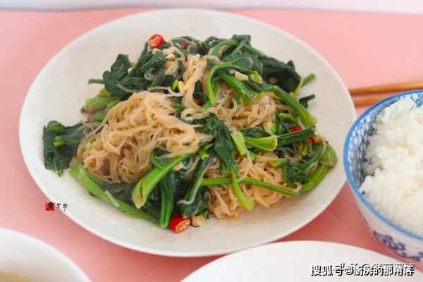有肉哪能沒有蔬菜啊,這季節的菠菜挺便宜,買回來吃火鍋或是煮粥做菜都非常美味。當然,做菠菜之前要焯一下水,這玩意兒草酸很高,而我焯熟以後和粉絲一起拌,加點麻汁、蒜泥和鹽,味道又鮮又香,比直接凉拌好吃多了。剛好我不吃米飯,吃點粉絲既解饞還能填飽肚子,不容易餓!