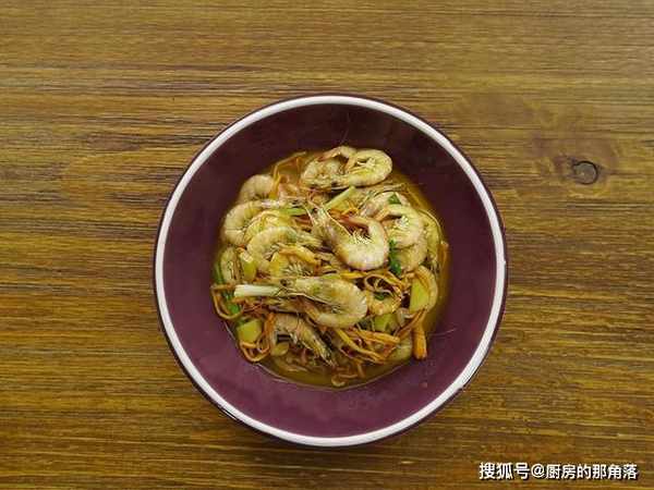 白蝦300克、蟲草花150克、薑2片、葱2條、紅蔥頭1粒、紹興酒1湯匙、高湯半杯、鹽少許、太白粉水少許