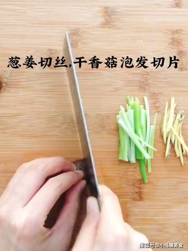 4.葱薑切絲,幹香菇泡發切片