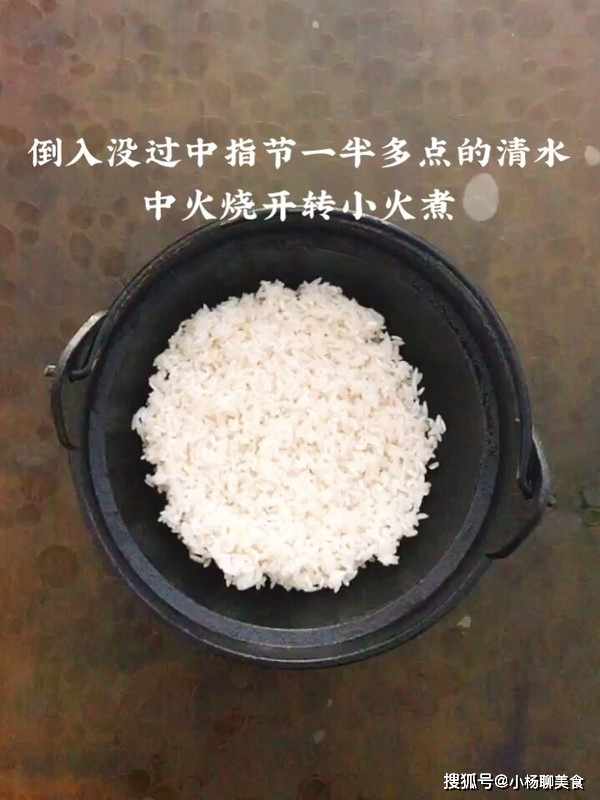 2.放入洗淨的胚芽米,加入沒過半個中指節多一點的清水,放在灶上中火燒開轉小火煮