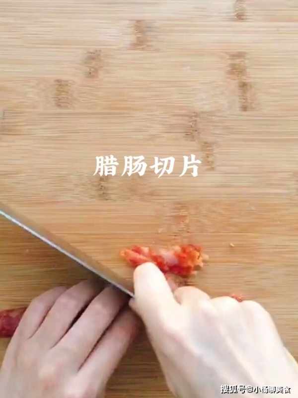 狠糧優選胚芽米120克、臘腸1根、幹香菇3朵、植物油1/3勺、薑2片、大葱1段、味極鮮2勺