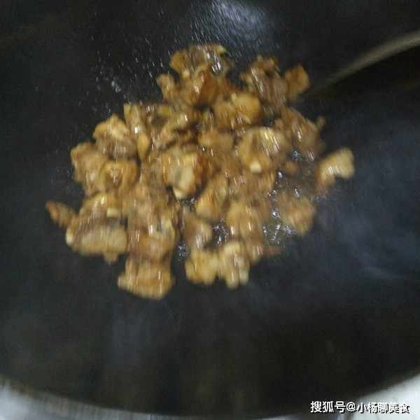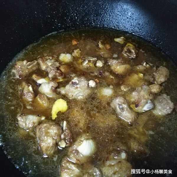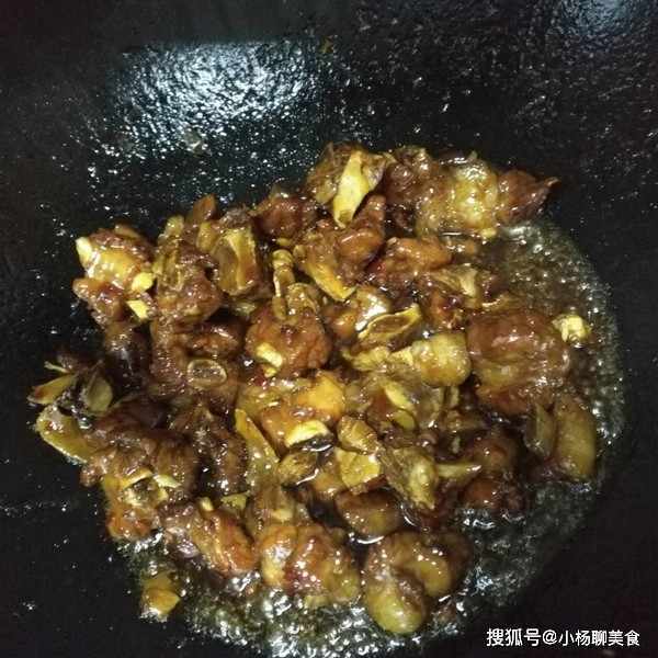 5.倒入排骨,炒一會,大概4分鐘左右,這樣會更香;然後加入剛才準備好的調料,加額外加點醬油