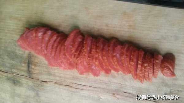 4.將烤腸斜切成片