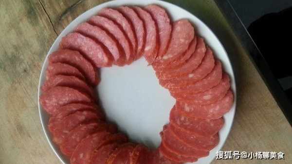 5.將切好的烤腸擺入盤中