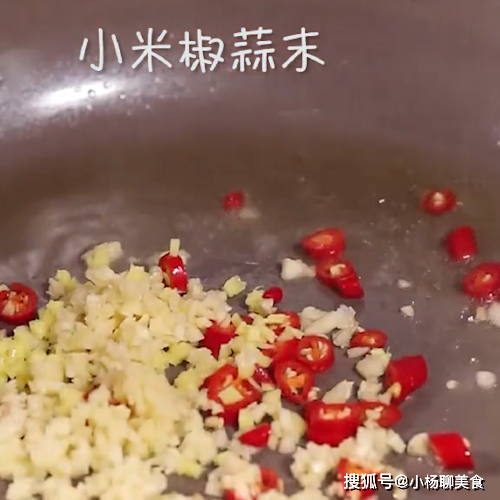 3.鍋內熱油炒香小米椒蒜末