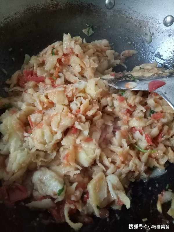 洋芋兩個、蕃茄兩個、麵粉適量、蒜末兩個、薑末適量、精鹽一勺、食用油適量