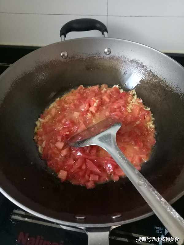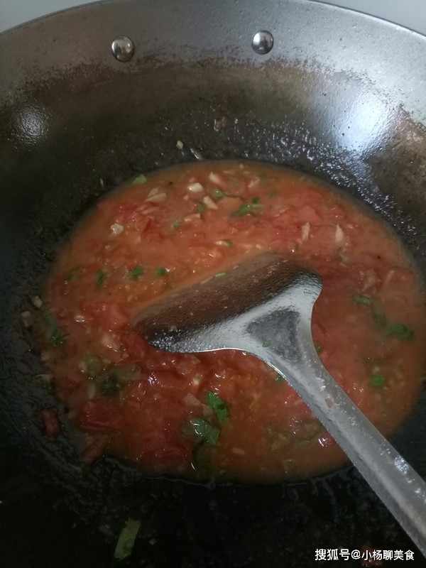 6.蒜末薑末爆香,下入蕃茄丁,加一點鹽,根據個人口味加!