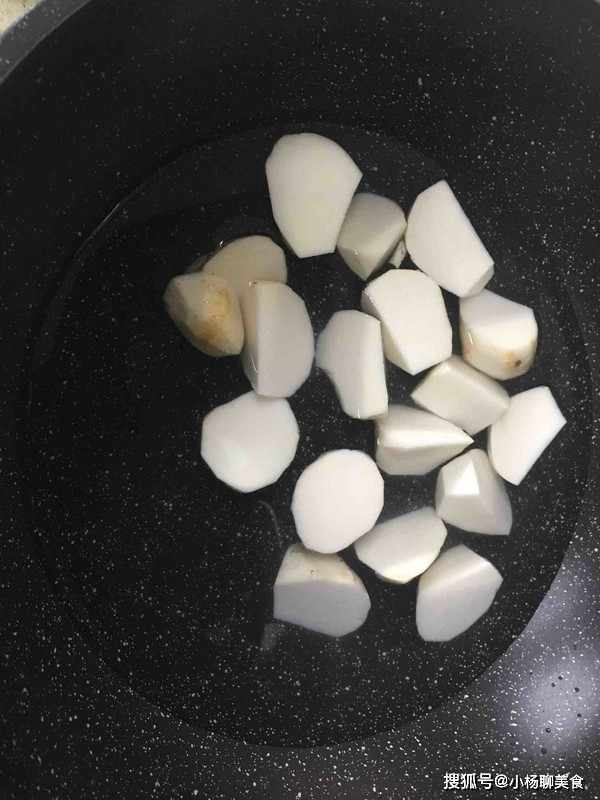 3.芋頭有明顯的開裂迹象,用筷子一戳就碎,盛出備用。