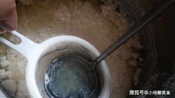 10.用篩子壓一下豆腐表面,盛出多餘的水份。