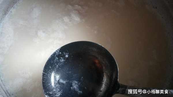 7.用勺子一點點盛入鹵水,沿鍋邊慢慢轉圈點制。