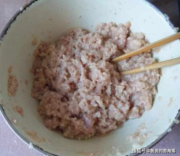 第三步:把備好的猪肉、陳皮和荸薺全部倒進料理機裡面絞碎(比較傳統的做法是用手剁,用手剁的口感更好一些,但是想節省時間的話,可以用料理機絞碎);等到肉泥打好以後,倒進碗中,在碗中加入適量的澱粉、油、鹽、蚝油和生抽,用筷子攪拌均勻,醃制一會兒。