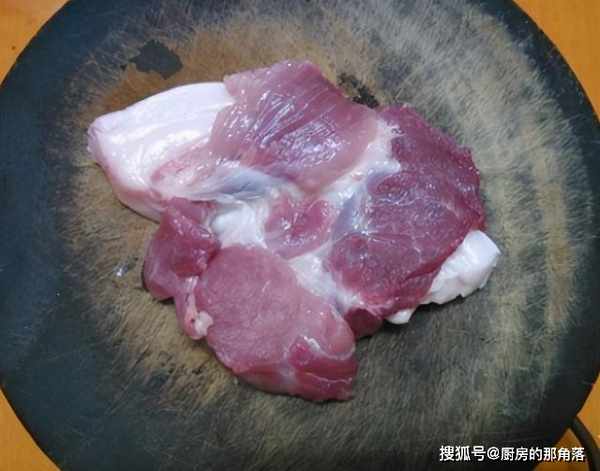第一步:我選用的猪肉是前腿肉,不想太油膩的,可以選擇肥肉少的部位,因為我比較喜歡瘦肉中帶一點肥肉,所以我選用的是3分肥7分瘦的前腿肉。把備好的前腿肉上面的皮去掉,然後把肉清洗乾淨,切成小塊的備用。