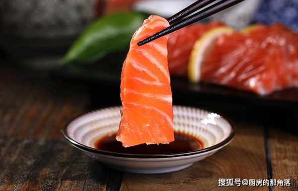 生吃鲑鱼,現在已經很常見了。在很多海鮮店,或者自助餐店裡,都有很多切好的鲑鱼片。最常見的搭配就是說鲑鱼蘸芥末,不但能殺菌而且還能提升味道,讓口感變得更好吃。但是一定要吃新鮮的鲑鱼片,否則口感和營養就會差很多。