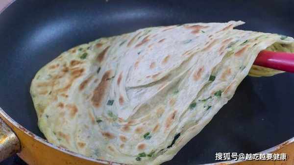 喜歡吃酥脆一點的就再多烙個10秒左右,表面有點焦黃色就可以關火出鍋了,大火烙餅時間短可以减少水份流失,所以餅會更柔軟,而且層次也很明顯;