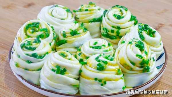 500克中筋麵粉、3克鹽、2克糖、溫水300克、蔥花1把