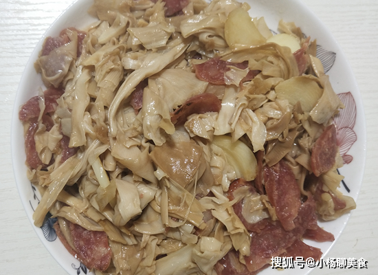 竹笋我常炒著吃,不管是幹竹笋,還是生的竹笋,都喜歡爆炒。說到這不得不說一下,幹竹笋味道要比生得好。幹竹笋吃起來讓人欲罷不能,真的特別過癮,就比如今天要給大家介紹的一道,幹笋炒臘腸,口感除了香,那就是鮮了,全家老小都喜歡吃。竹笋含有蛋白質和胺基酸,還有各種維他命,不僅能開胃促進消化,還可以通便排毒,是一種低脂肪,低糖,多纖維素的保健食物。把它結合臘腸一起炒,營養全面的同時,口感也是棒棒的,讓人無法抗拒,所以成了我們家餐桌上的常客,這不,今天炒的這些幹竹笋是夏季老爸剛曬的,待我休息時,都會買上各種葷菜搭配著和它一起炒著吃,因為竹笋不像其它菜,它這個是很吸油的,所以搭配臘腸炒我,開胃又下飯呢。孩子的成長過程中,營養上一定要足够,那這竹笋就能提供各種營養價值,在秋季常吃還能強身健體,小孩常吃開胃下飯,簡單又營養。
