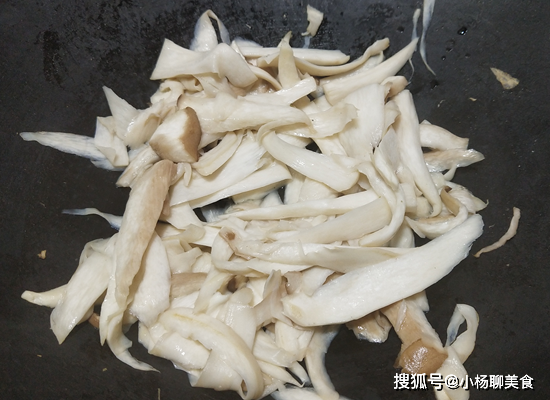 第三步:先幹炒杏鮑菇,不放油把它水分炒出,口感更脆,越炒越出水,待水分幹時,再加少許油,然後再鏟出裝盤。