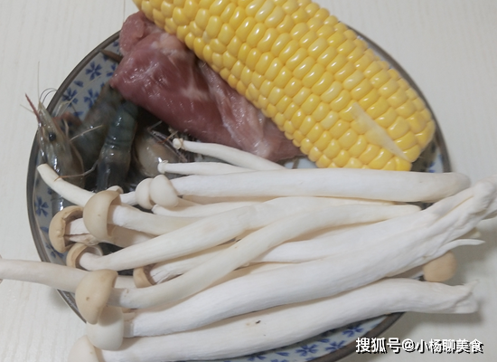食材:油豆腐12個左右,基圍蝦適量,猪瘦肉,玉米,白玉菇少許,薑,鹽,蔥花,食用油