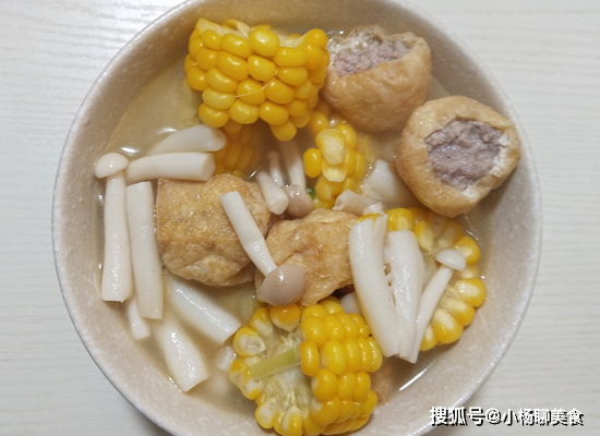 畢竟孩子在長身體,所以營養上,不能馬虎,肉和蔬菜一樣都不能少,全葷菜容易膩,加上素菜這樣也更有食欲,那今天就給孩子做了一道這樣的菜,其中有白玉菇,還有玉米,油豆腐,雖說這些食材平時也常吃,但今天的做法特別,把肉釀在豆腐裏,孩子非常愛吃,搭配菌菇,白玉菇,味道上可以說能加滿分。玉米一直都是孩子的最愛,平時除了煲湯,還會把玉米剝下一粒粒,和火腿腸炒黃瓜一起炒,孩子都包下了一大盤。常吃玉米有益健康,能護眼還能增强人體的記憶力,所以是最適合孩子吃。白玉菇中的鐵質含量高,可起到補血,增强免疫的作用。小孩不愛吃肥肉,所以特意買了全瘦的,用了特別的做法,加上葷素搭配。做法很簡單,把瘦肉剁成末,然後塞到油豆腐,讓兒子很好奇,看上去很誘人,味道上也是很鮮,很贊,做一大盆不够吃。