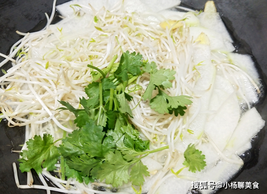 第四步:接著放入豆芽,大火煮一分鐘,最後撒上香菜,拌均勻即可起鍋食用。